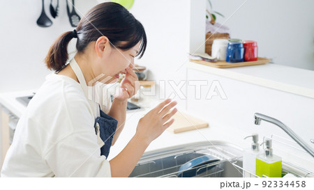 キッチンが臭くて鼻をつまむ女性(家事・主婦)