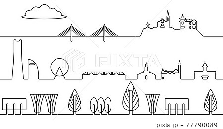 横浜の街並 モノクロ線画