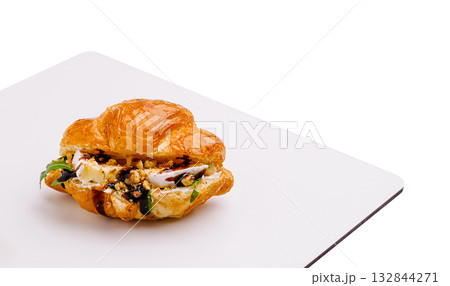Delicious pastry filled with cheese and herbs on a white plate