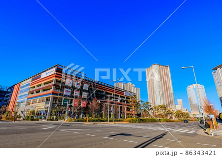 東京 江東区 豊洲2丁目店の都市風景 パークシティ豊洲タワーとららぽーと豊洲
