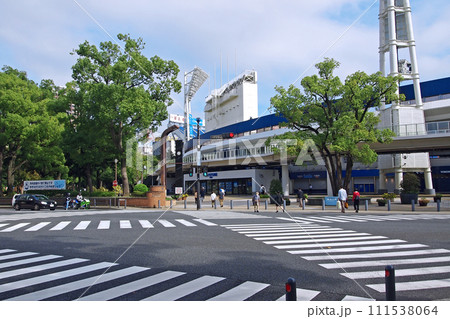 日本の横浜都市景観 関内駅南口。横浜スタジアムでのゲームが終わり帰宅するファンら=10月2日