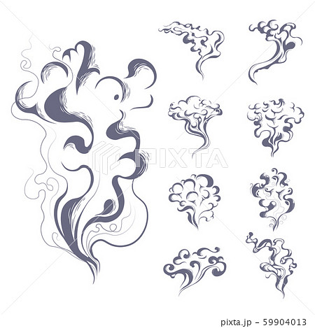 Smoke and vapor or steam, smoking cigarettes and fire burning, isolated icons