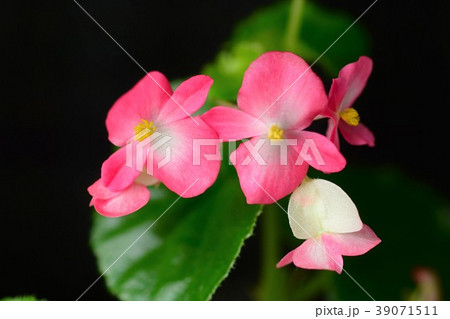 Delicate Pink Begonia Blossoms with Yellow Centers on Pink, Floral