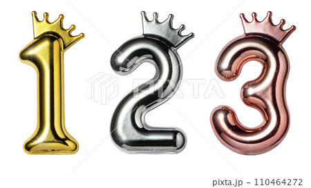 1,2,3の数字の、バルーン風のメタリックなオブジェ