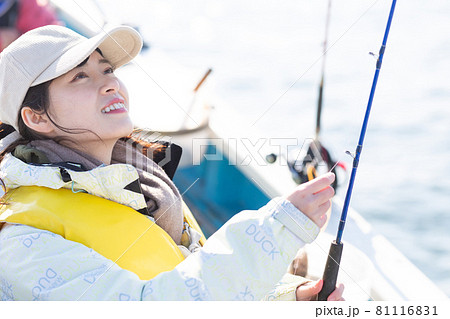 魚釣りをするかわいい女性