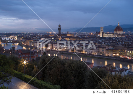 フィレンツェ*ミケランジェロ広場から望む夕暮れのフィレンツェ歴史地区の街並み【イタリア】