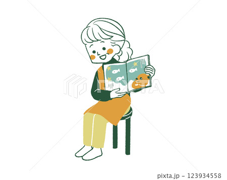 絵本の読み聞かせをしている女性-4色
