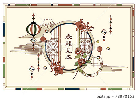着物の女性とレトロな丸窓のベクターフレームイラスト素材