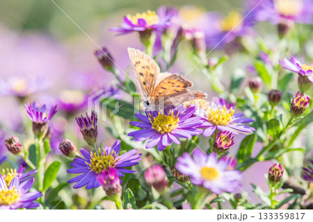 薄紫色の小花にとまるベニシジミ