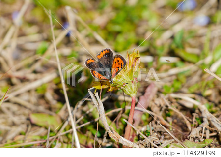 翅を開いたベニシジミの雄(北海道・白糠町)