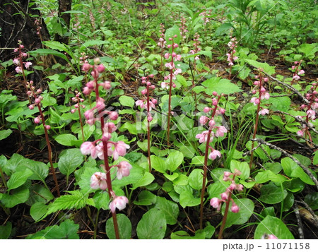 林の日陰に咲くベニバナイチヤクソウの群落【ツツジ科】