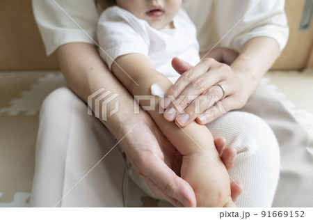こどもの腕にクリームを塗るイメージ