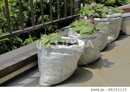 サツマイモのベランダ土嚢栽培
