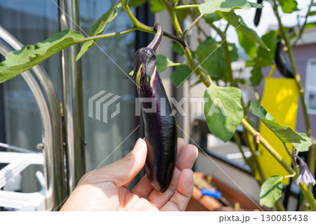基本は「三本仕立て」。ベランダのプランターでも楽しめる茄子の収穫。
