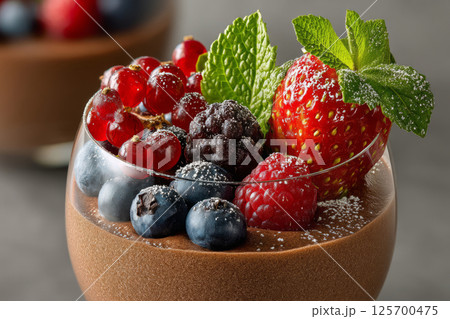 A close-up image showcasing a variety of fresh berries, including strawberries, blueberries, blackberries, and raspberries. Neural network ai generated art