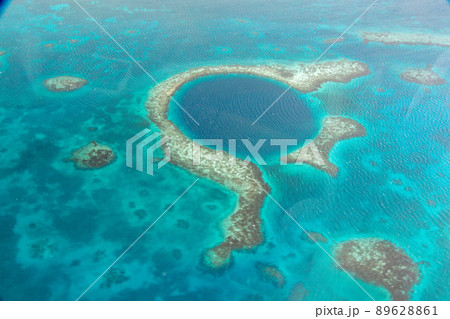 上空から見た世界遺産のグレートブルーホールの美しい風景