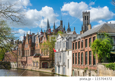 Colorful historic buildings in Old town of Bruges in West Flanders, Belgium