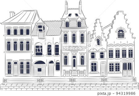 Vector. Old medieval houses in the historical part of Bruges.