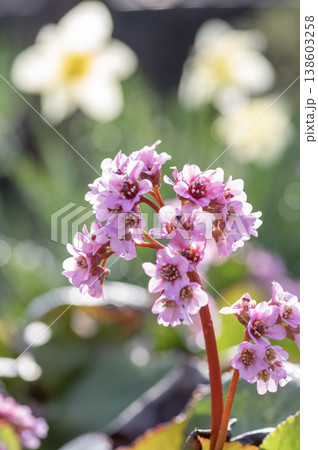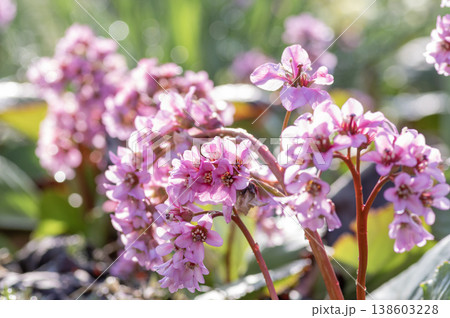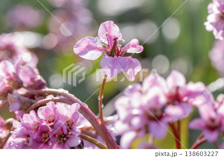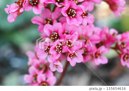 春に咲くヒマラヤユキノシタのピンクの花