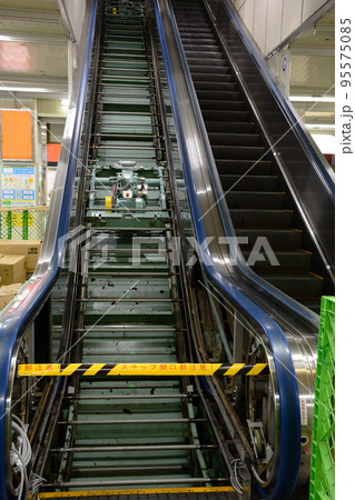 整備中のエスカレータ