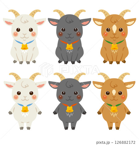 色違いのヤギキャラクターイラストセット