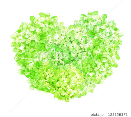 水彩で描いた緑色の紫陽花のハート