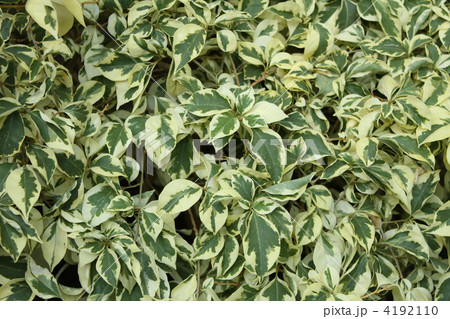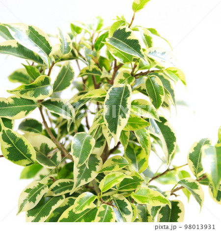 Variegated foliage of a Weeping Fig. Ficus benjamina