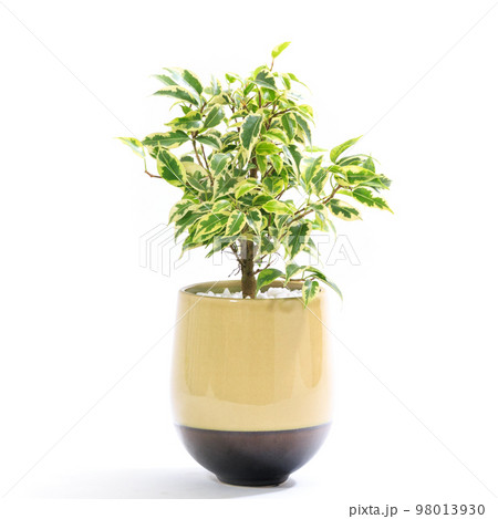 観葉植物、フィカス・ベンジャミナ・ラブリーの鉢植え【白背景】