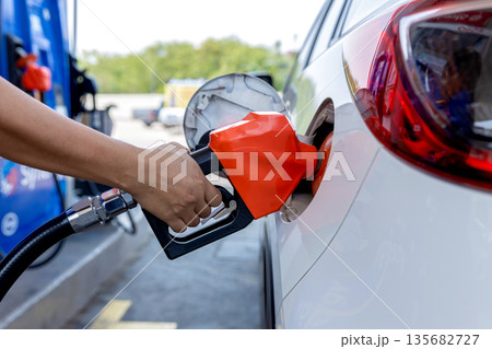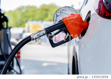 gun at a petrol station to replenish the tank with petrol.