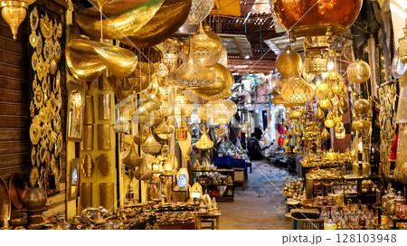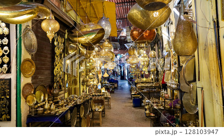 モロッコ マラケッシュ メディナ旧市街の風景 真鍮スーク