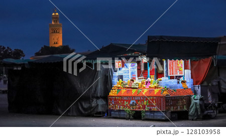 モロッコ マラケッシュ メディナ旧市街の風景 夜明け前のフナ広場