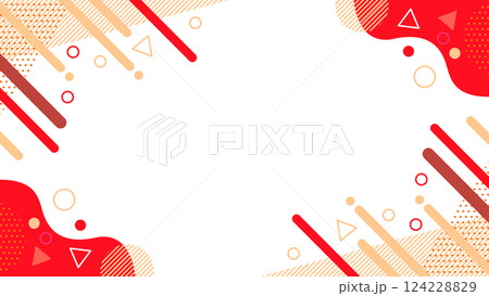 かわいい抽象的な幾何学模様のフレーム素材 チラシ・Web・動画16:9サイズ 赤 ベージュ
