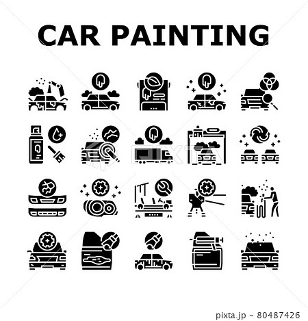 Car Painting Service Collection Icons Set Vector