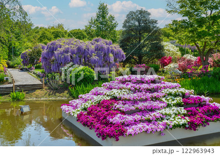 紫藤とペチュニアの競演