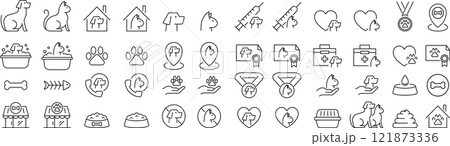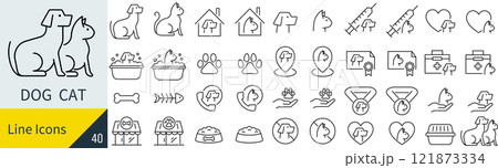 ベクターでモノクロの犬猫に関する線画アイコンセット