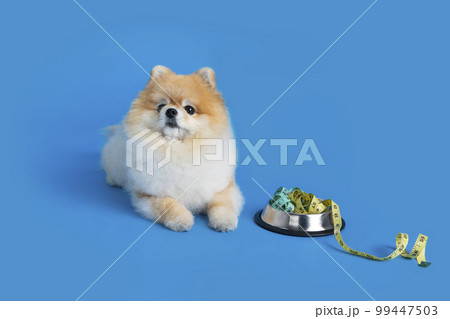 Professional animal photographer taking picture of beautiful Pomeranian spitz dog indoors, closeup