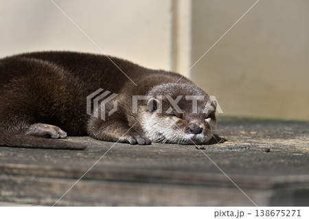 Adult African serval lying on floor. Wild cat with spotted body and large ears. Predatory animal
