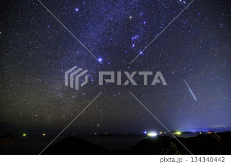 瀬戸内の秋の星景オリオン座と冬の天の川