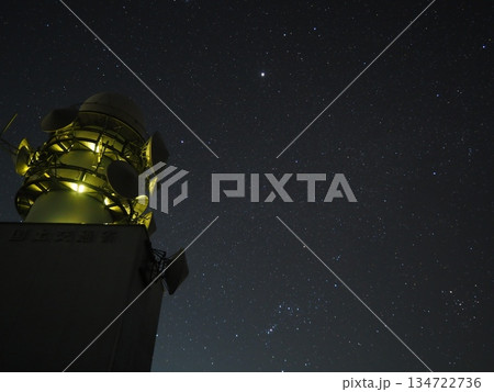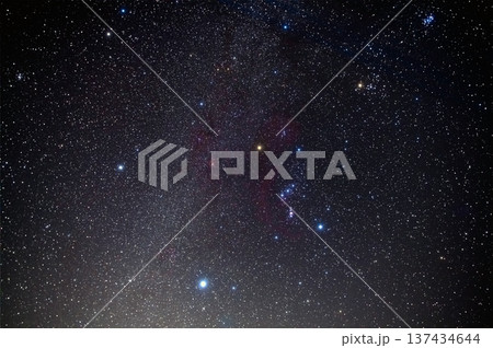 八ヶ岳の上空にオリオン座と冬の大三角形と冬の星座