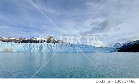 ペリトモレノ氷河の引きの写真と青空