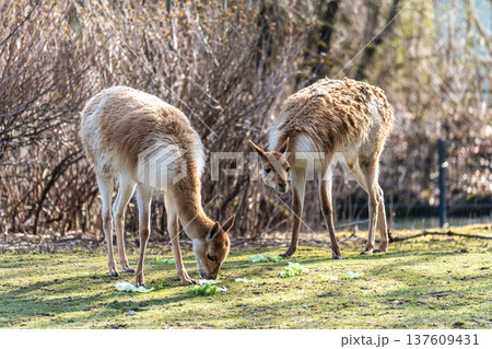 Vicunas, Vicugna Vicugna, relatives of the llama in a German park