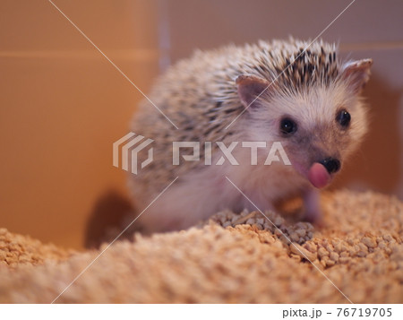 舌をペロッとするハリネズミ