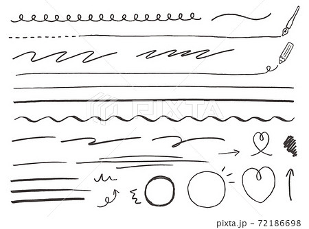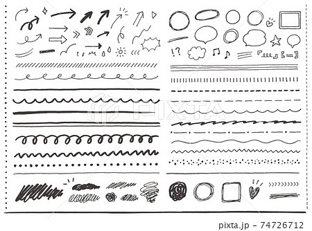 いろんな手描きの線や矢印、吹き出しのセット(白背景)