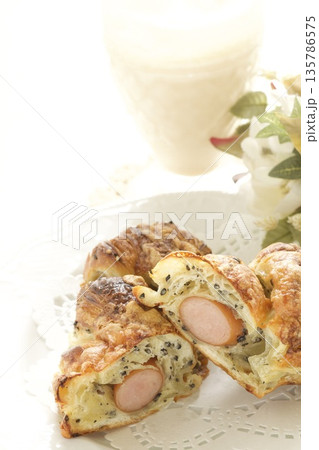 紅茶とソーセージ入りペーストリー