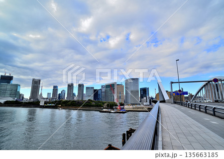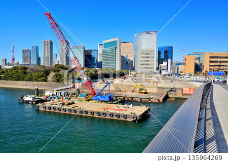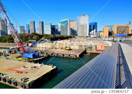 隅田川 再開発が進む築地市場跡地 築地大橋