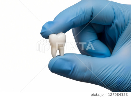 Hand holding a tooth ,dental care concept isolated on transparent background, oral hygiene