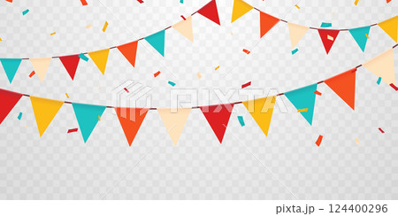 Banner with garland of flags and ribbons. Holiday Party background for birthday party, carnaval. Vector Illustration