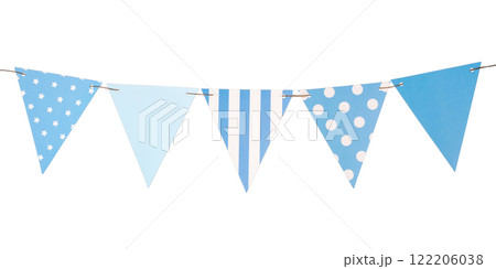 Flag garland. White, blue, red pennants chain. Party bunting decoration. Triangle celebration flags for party decor. Vector