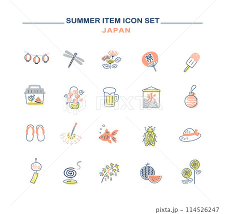 日本の夏のイメージ アイコンセット