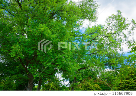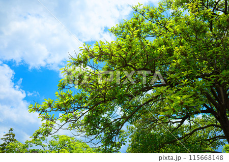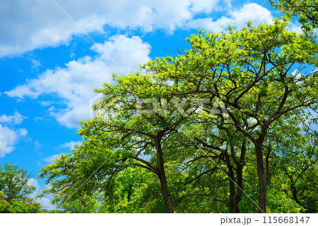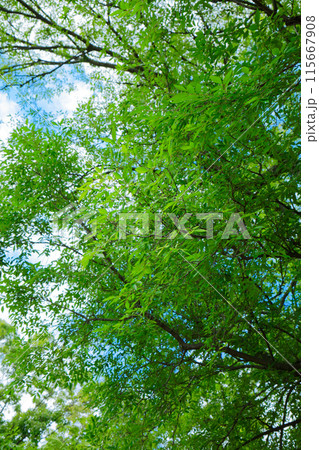 ラクウショウの木の若葉に新緑 荒川自然公園